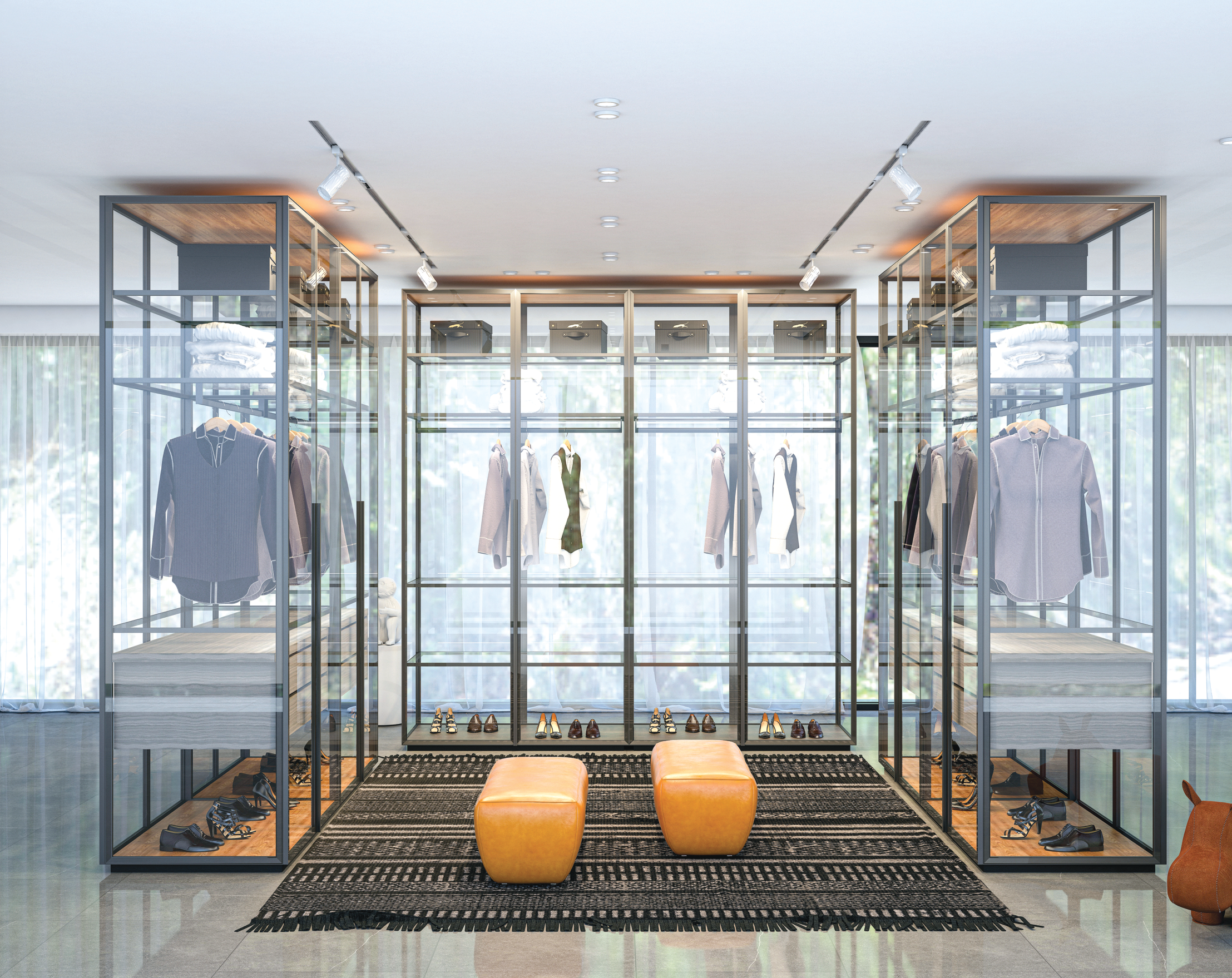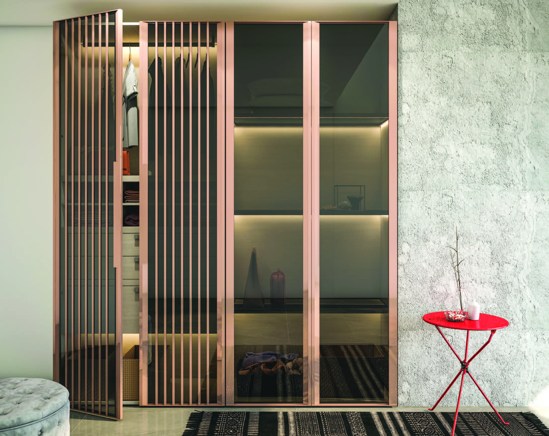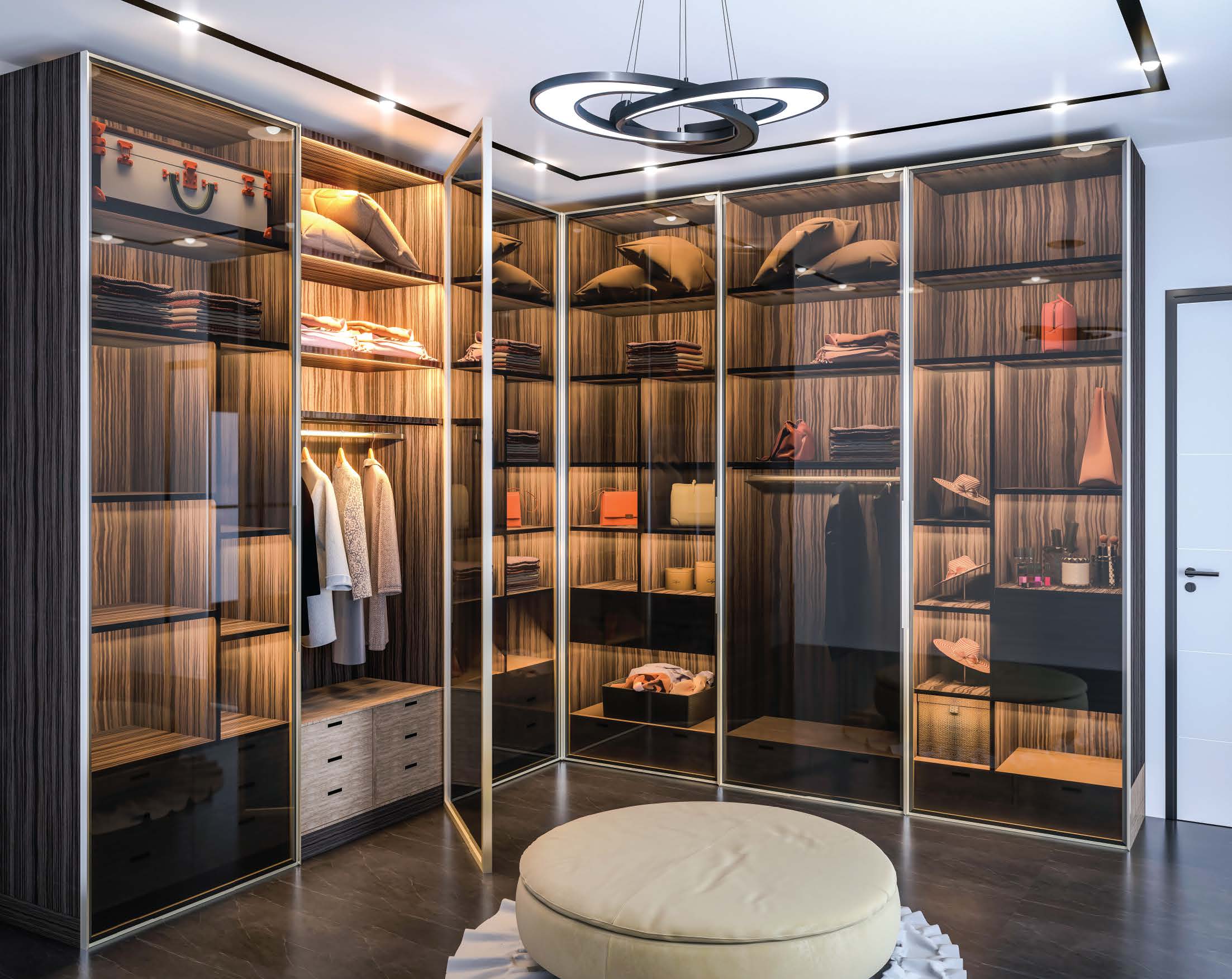 - Inbuild LED profile glass shelves & hanger rod